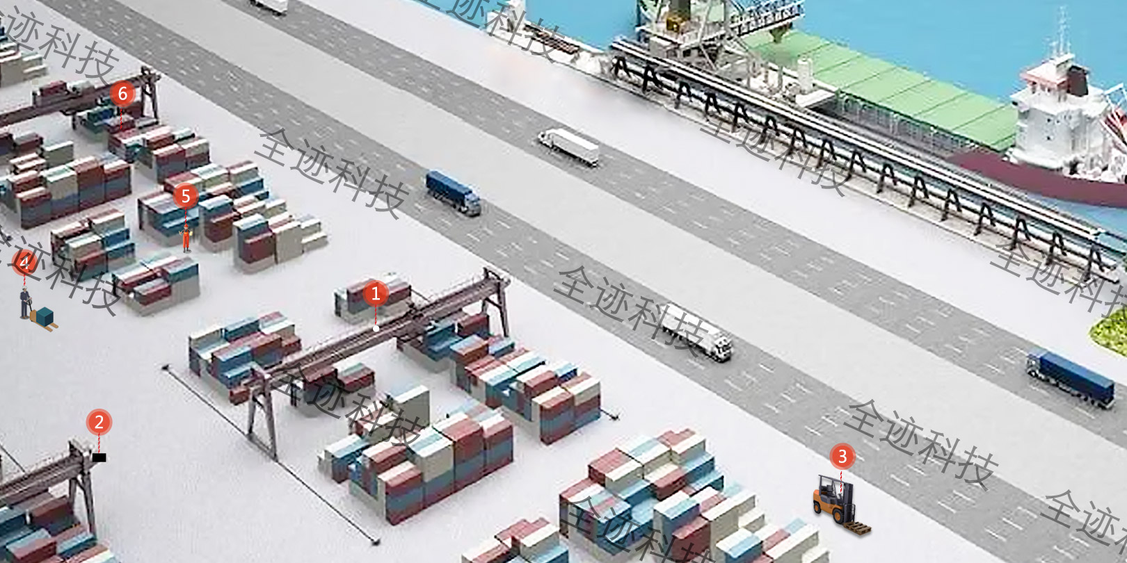 联动进出口管理系统,车辆进入特定区域后实时位置及行驶轨迹动态监控并上传中控台,实现合理调度,安全监管