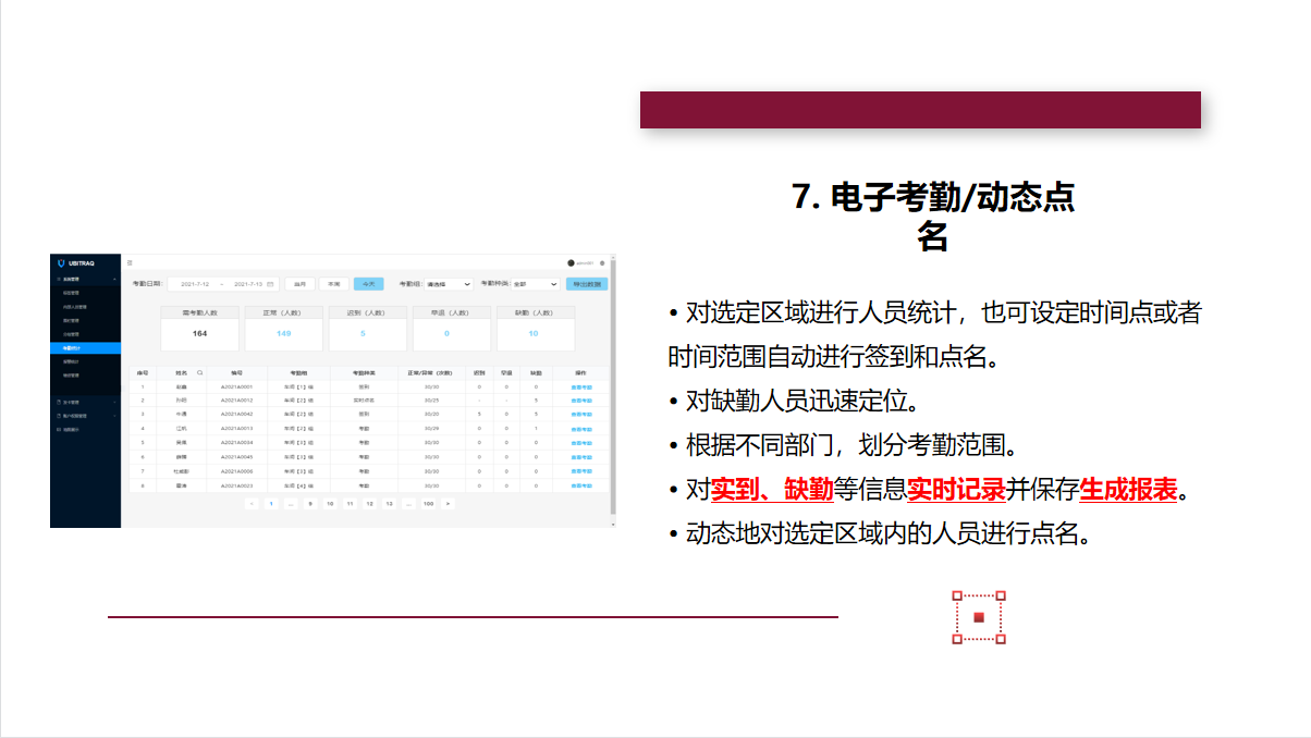 标签:待定位的人员、资产上须佩戴室内定位标签。标签发射UWB信号,与基站相互通信,使标签自身被定位。