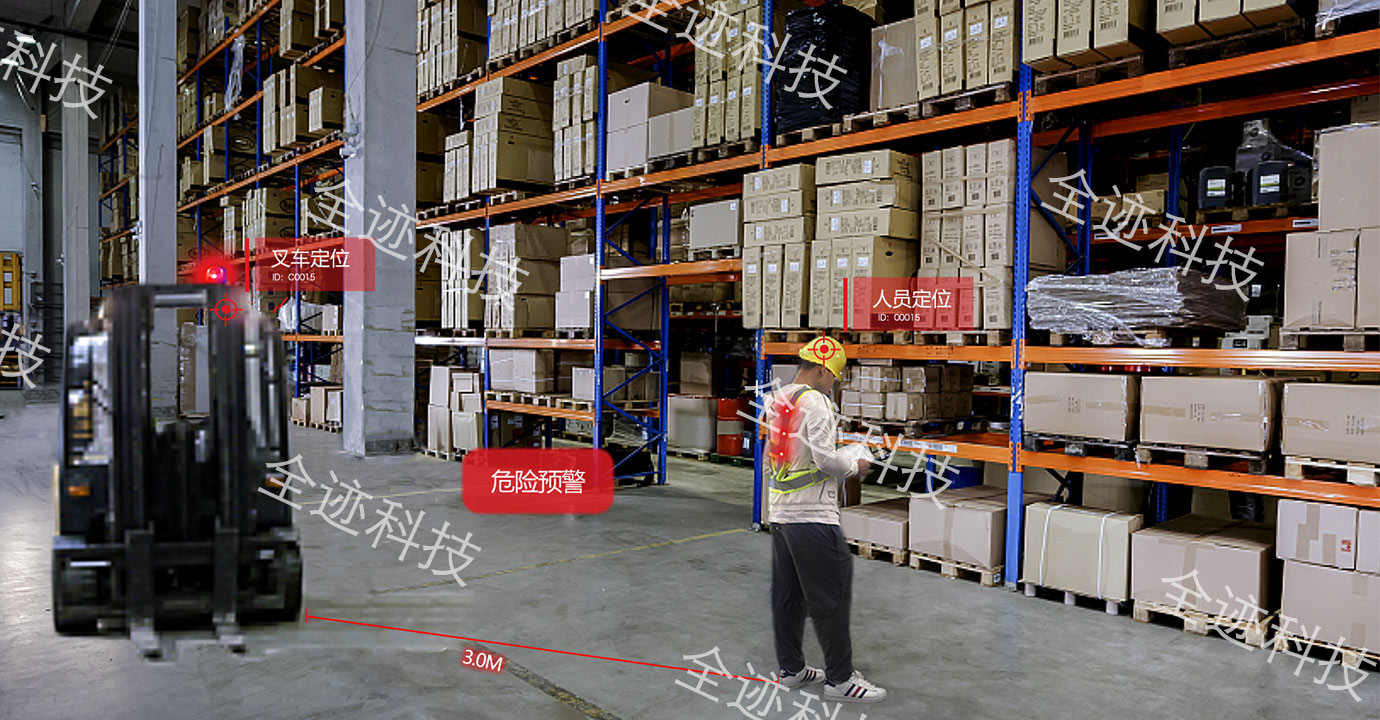 基于UWB测距终端实现人车安全测距,超过距离阈值则触发告警提醒。