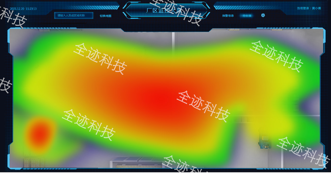 人员、车辆、各类物资分布实时监测并以热力图形式展现,物流通道是否拥堵、特定区域是否超员动态监控。