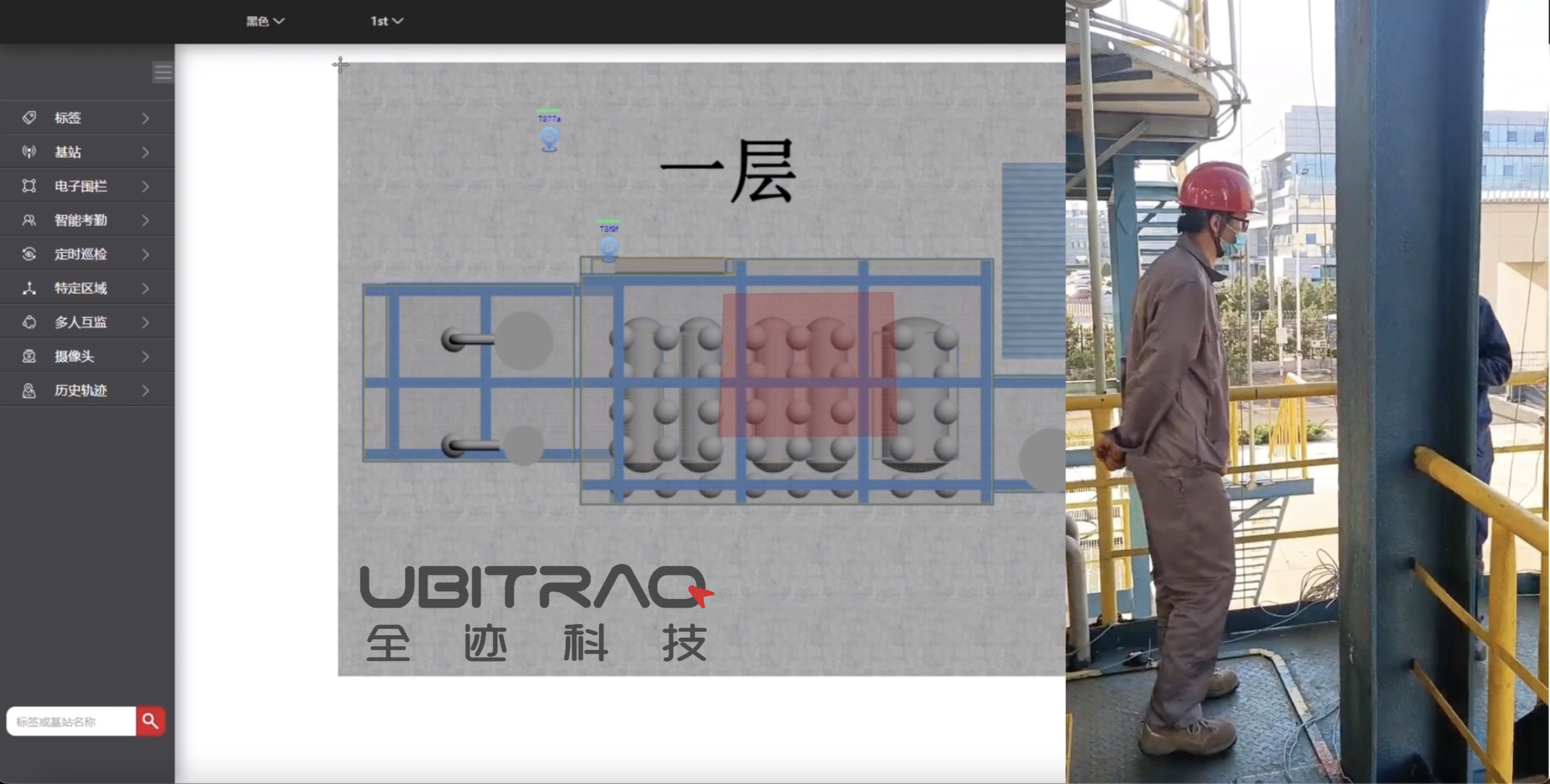 此视频为厂区内人员定位展示: 厂区环境复杂、遮挡严重,UWB定位技术可靠性和稳定性优势得到发挥